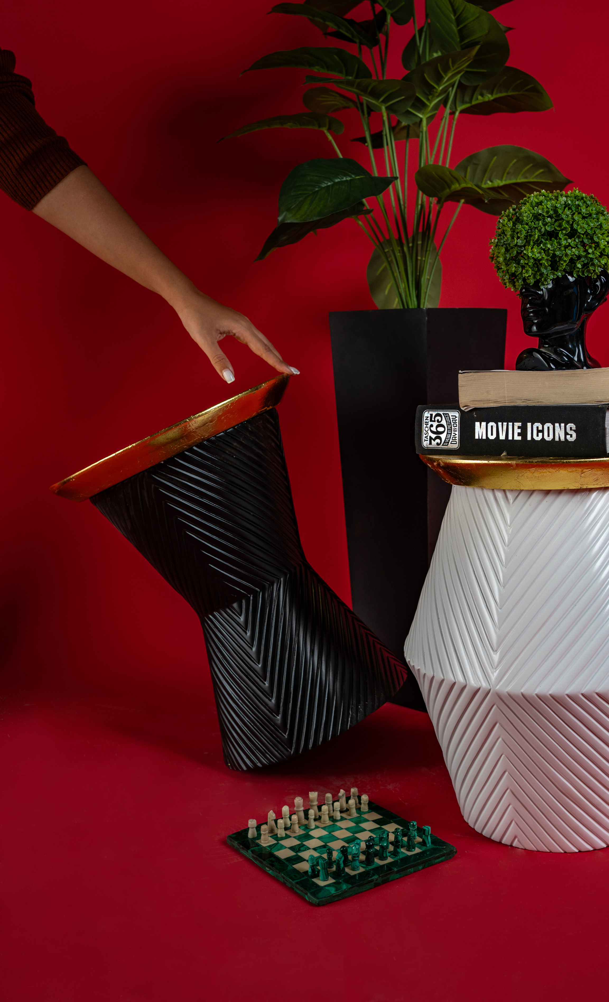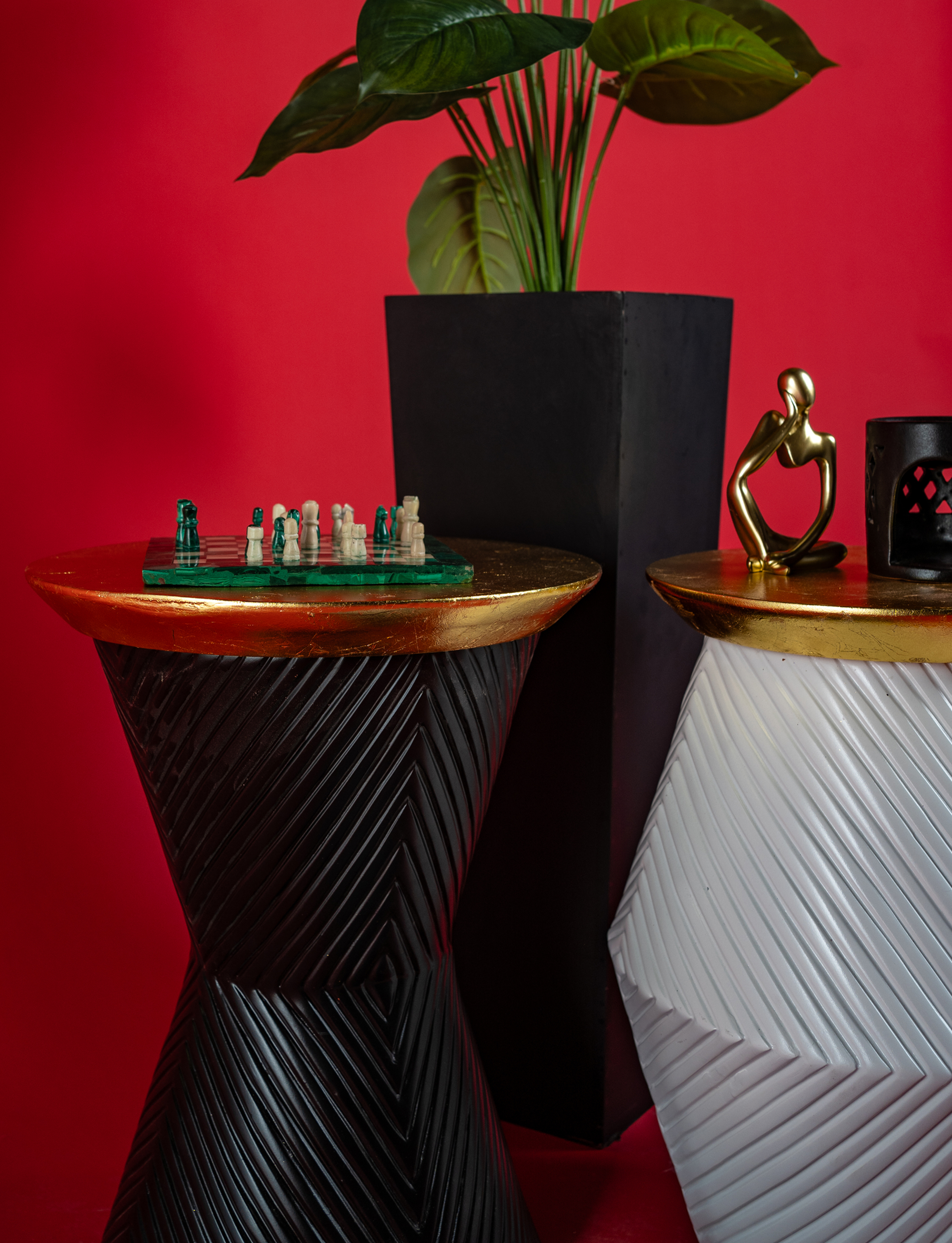 Anubis-inspired side table fusing modern design with ancient Egyptian identity. Bold black & white contrast, gold accents, and premium wood craftsmanship!